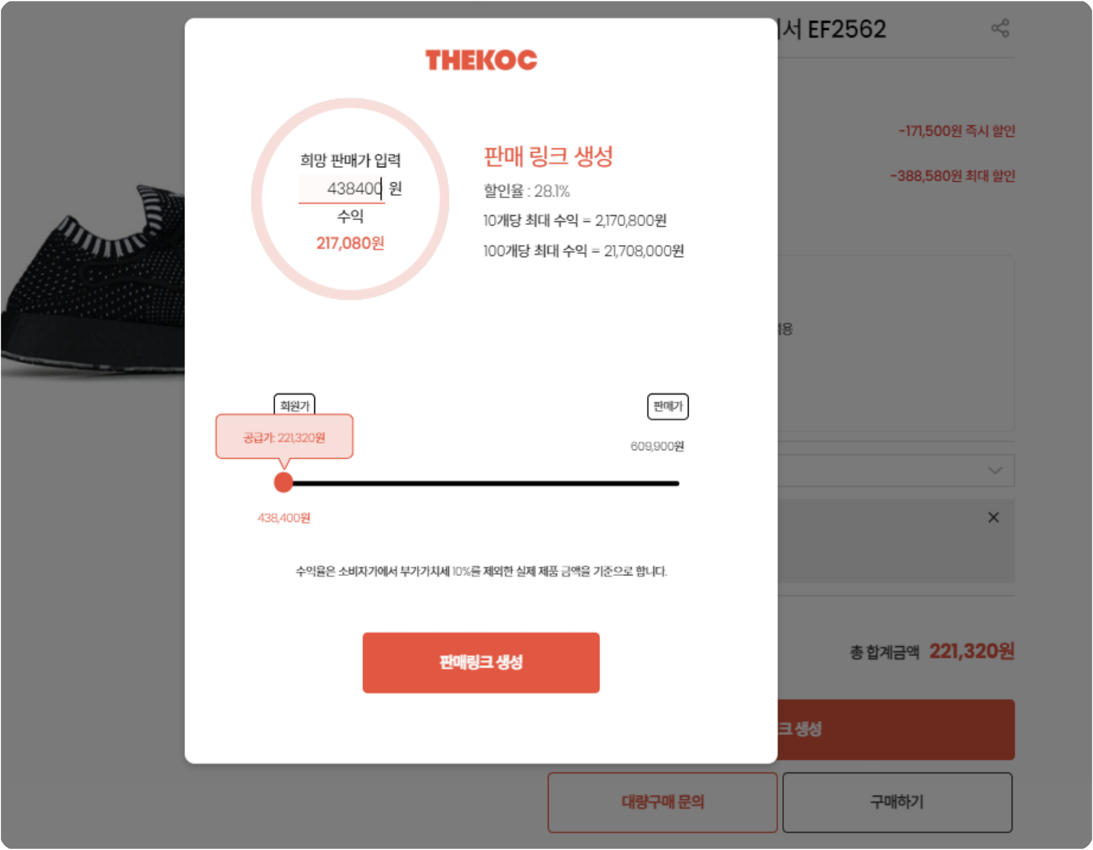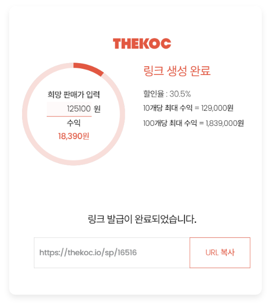 가격 조정하고 판매링크 생성하면 끝!