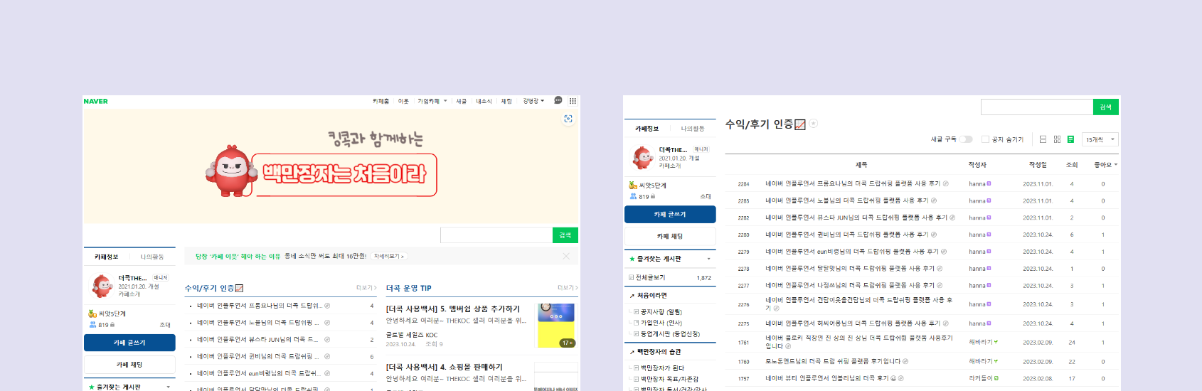 더콕 커뮤니티에서 다른 회원들과 경험을 공유하고,