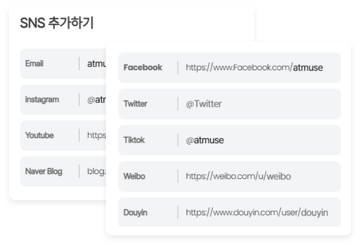 인스타그램, 페이스북, 틱톡, 블로그, 웨이보,