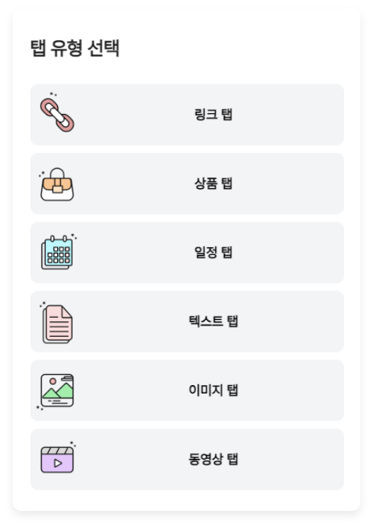 링크, 상품, 일정, 텍스트, 이미지, 동영상까지