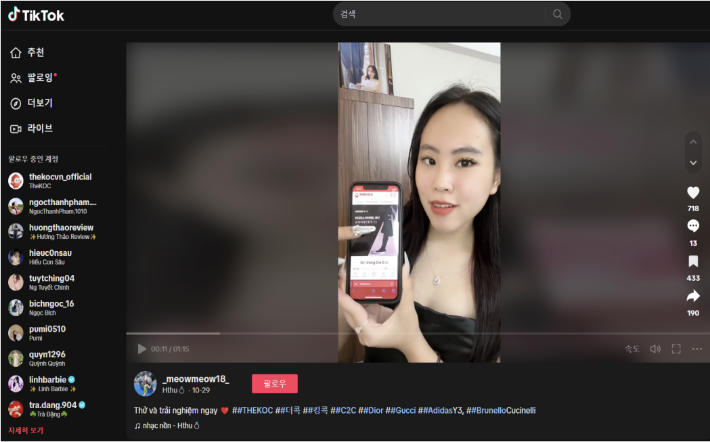 참여한 소셜셀링 상품의 링크를 틱톡 컨텐츠에