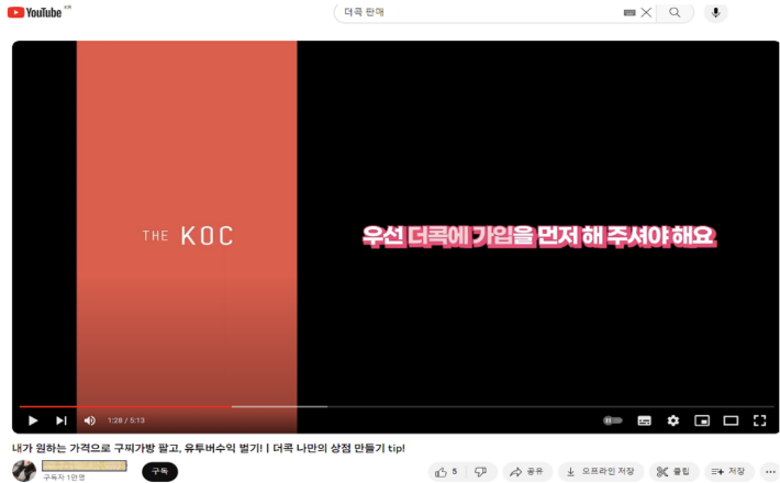 참여한 소셜셀링 상품의 링크를 유튜브 내용에