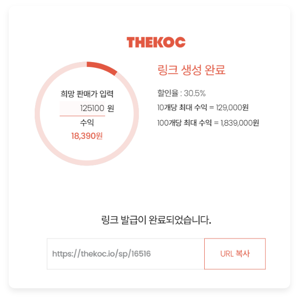 상품 판매시, 판매 수익은 나에게 적립됩니다.